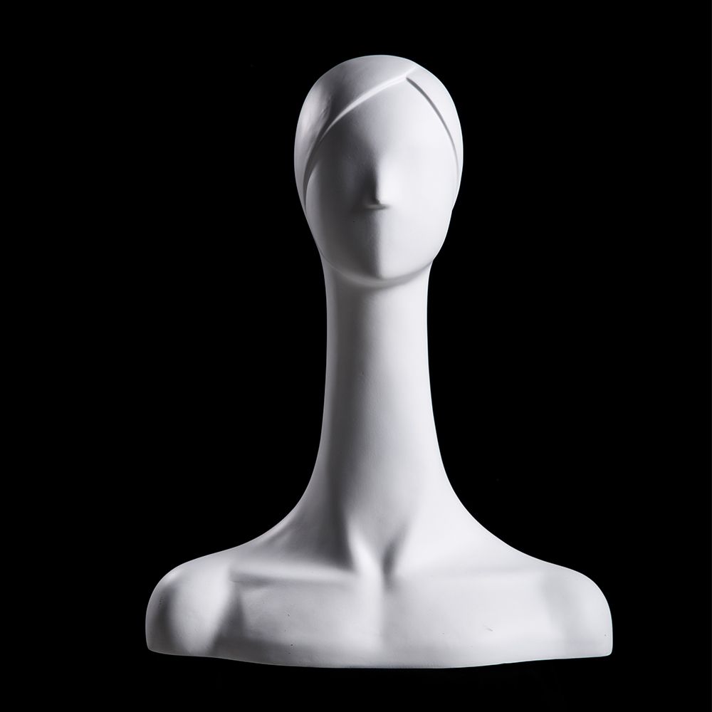 The white color female mannequin head with sculpture hair is one of our special design items. This long-necked mannequin women head hand can be displayed together with the mannequin hand.